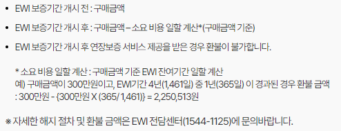 EWI개시전에는 100%환불 / 개시후에는 일할계산하여 환불되고, EWI를 이용한 서비스를 제공받은경우 환불 불가합니다.